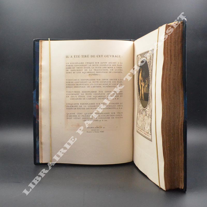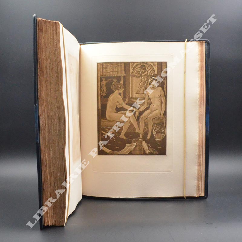 Paris, Georges et Robert Briffaut, 1923. In 4° (27,5 x 21,5 cm), reliure époque demi chagrin maroquiné à coins, dos mosaïque, 201 pages. - 4 frontispices, 18 eaux-fortes en couleurs hors texte, quelques lettrines et ornements typographiques gravés sur bois par André Lambert. Couvertures conservées, . De très légères ombres du format des eaux-fortes sont situées sur les pages en regard de ces mêmes illustrations et ce sans gravité. Edition originale de la nouvelle traduction due à Pierre Lièvre (avec le texte latin en regard). Tirage total de 500 exemplaires.