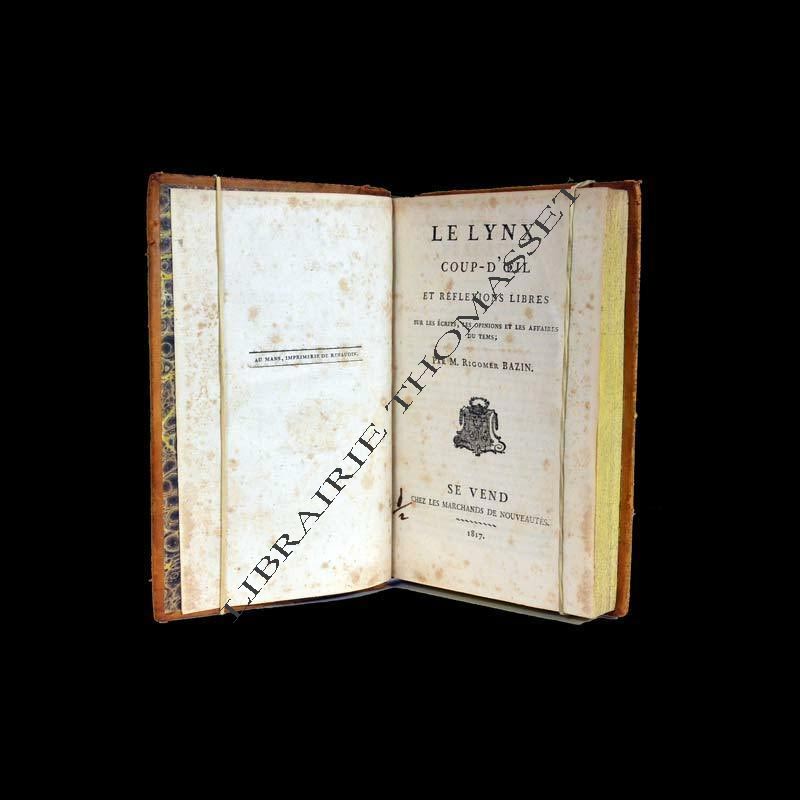Le lynx, coup-d oeil et réflexions libres sur les écrits , les opinions et les affaires du tems par Rigomer Bazin