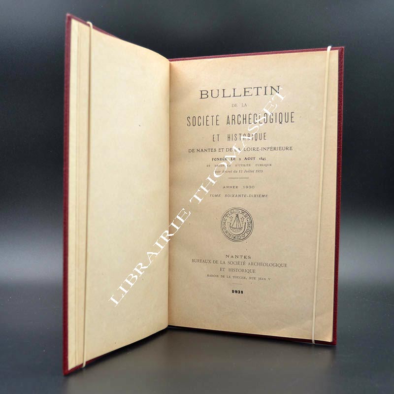Société Archéologique et Historique de Nantes et de la Loire inférieure 1931, 16x24cm, relié simili cuir, planches hors texte et carte dépliante.