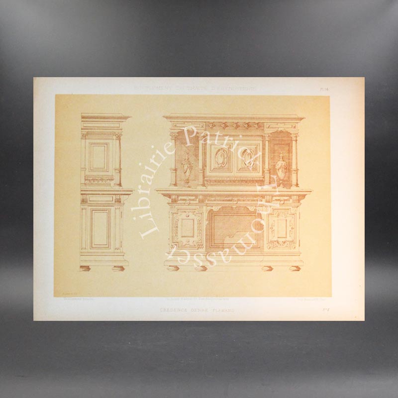 Paris, Ch. Juliot éditeur sd, portefeuille 44x33cm, complet de l'ensemble des planches (mobilier et profils), quelques défauts mineurs à quelques planches (bords avec petites fentes et quelques traces de plis marginaux). Nom écrit sur la couverture (masqué sur l'image par nos soins), lacets manquants.